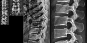 Pacjentka lat 72, przychodzi z bólem w odcinku piersiowym, bardziej usytuowanym po prawej stronie, twierdzi że dolegliwości są sinusoidalne ale stałe, czasem budzi się rano i czuje ten dyskomfort. Co ważne, jest w okresowej kontroli neurochirurgicznej z powodu stwierdzonej w obrazie MRI dużej dyskopatii Th7-Th8 znacznie zwężającej kanał kręgowy.